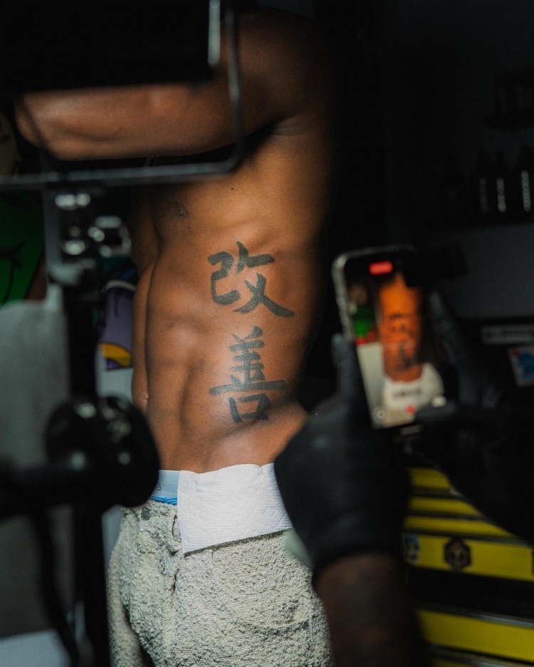 10月7日讯 纹身师Kavon Udoh晒出了他为内史密斯新增纹身的动态,内史密斯纹在腰间的是两个大大的汉字——改善。但稍显遗憾的是纹身师表示这是日语“改善”(念法:Kaizen),在日语里“改善”和中文写法是一模一样,用的是同样的汉字。