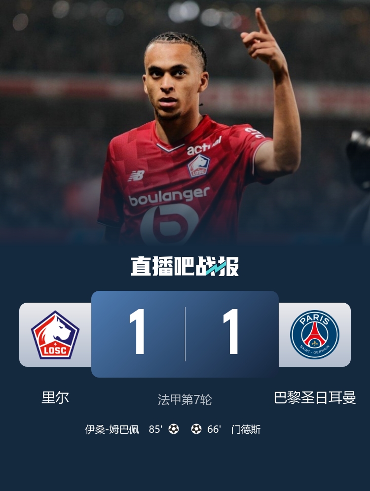 85分钟遭绝平!巴黎1-1里尔 伊桑-姆巴佩绝平老东家 哥哥现场观战